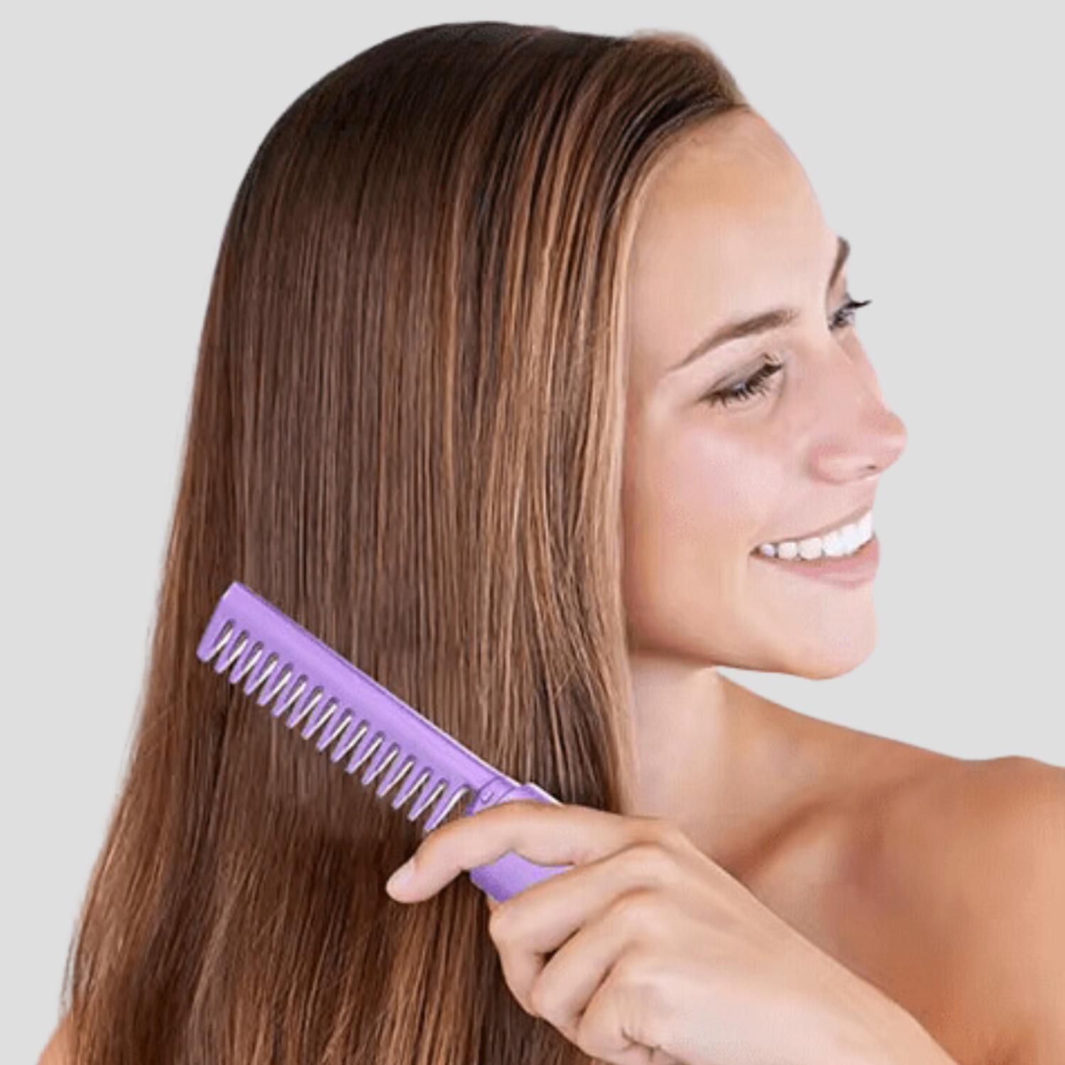 - Anwendung: Kamm langsam durch das Haar führen, beginnend an den Wurzeln bis zu den Spitzen, für gleichmäßiges Glätten.