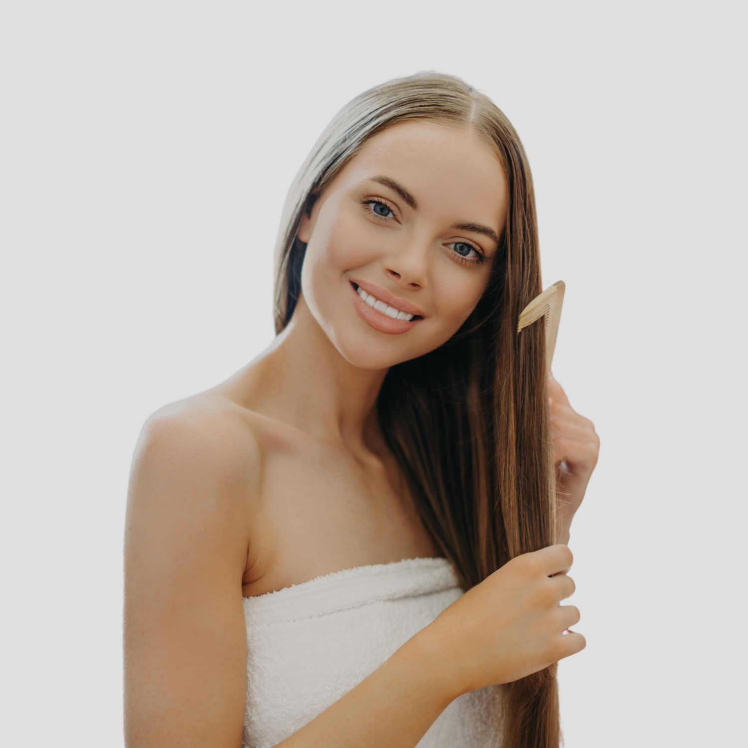 - Anwendung: Kamm langsam durch das Haar führen, beginnend an den Wurzeln bis zu den Spitzen, für gleichmäßiges Glätten.